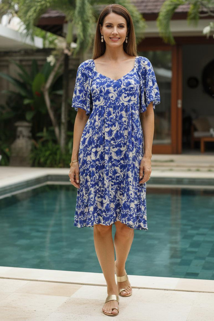 Rayon Crepe Babydoll Dress Flare Sleeve